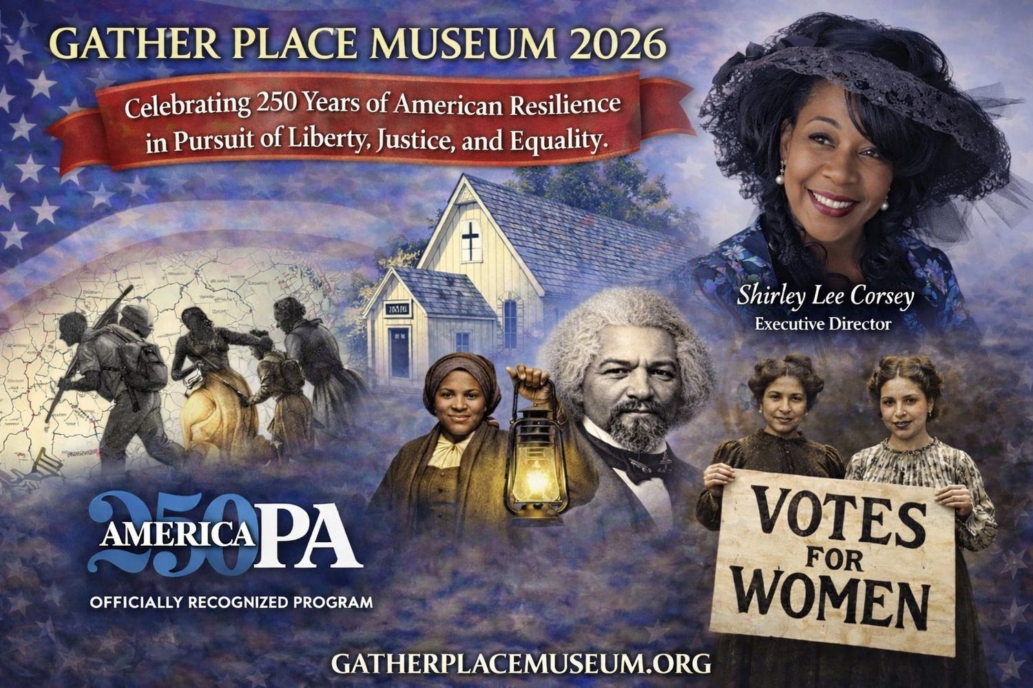This America250PA Officially Recognized Program created and presented by Gather Place Museum—headquartered in Yardley’s historic 1877 African Methodist Episcopal (AME) Church, listed on the National Register of Historic Places—honors the 250th anniversary of the United States of America by shining a light on the courage, conviction, and resilience that have shaped our shared pursuit of liberty, justice, and equality.