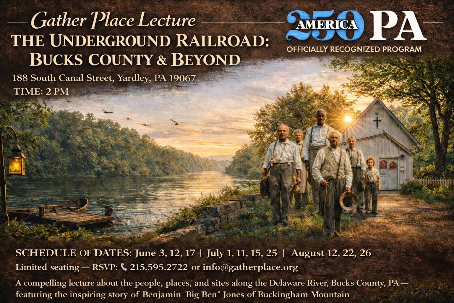 Participants will explore documented and speculated Underground Railroad sites, uncovering Yardley’s connections to Bucks County and the broader national network that supported freedom seekers. These stories of courage, resistance, and community remain vital as we reflect on America’s 250th Anniversary.